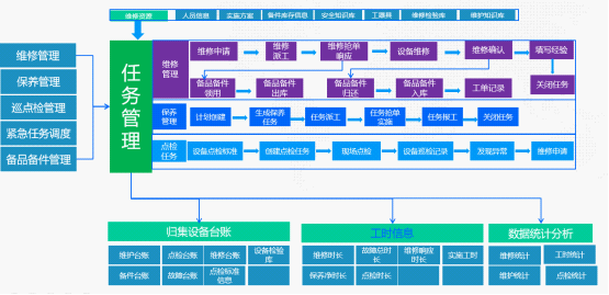 細化設(shè)備維修、設(shè)備點檢、設(shè)備保養(yǎng)各個階段的任務(wù),提高了各個階段的協(xié)調(diào)處理;